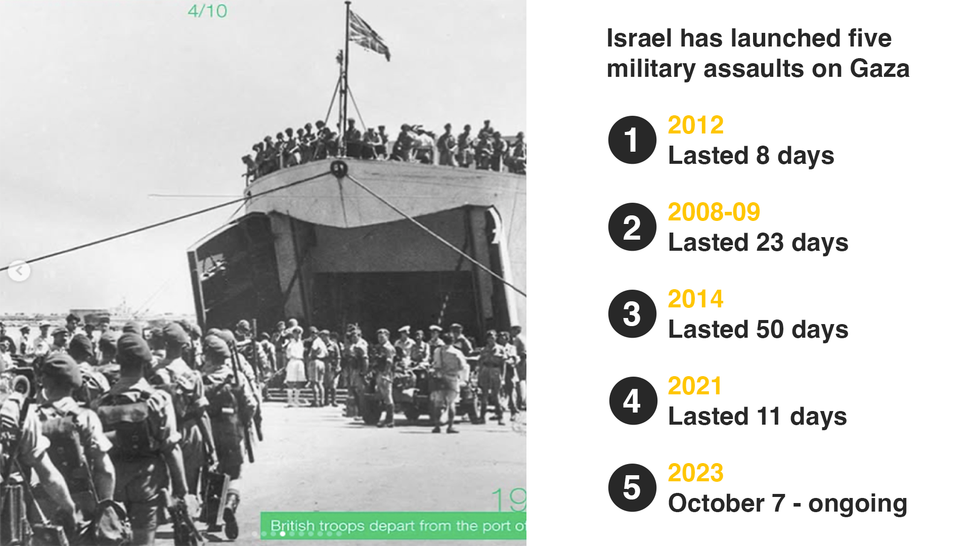 In 1948, with the end of British rule, Israel declared independence — sparking the First Arab–Israeli War on May 15.